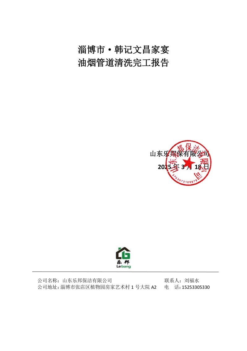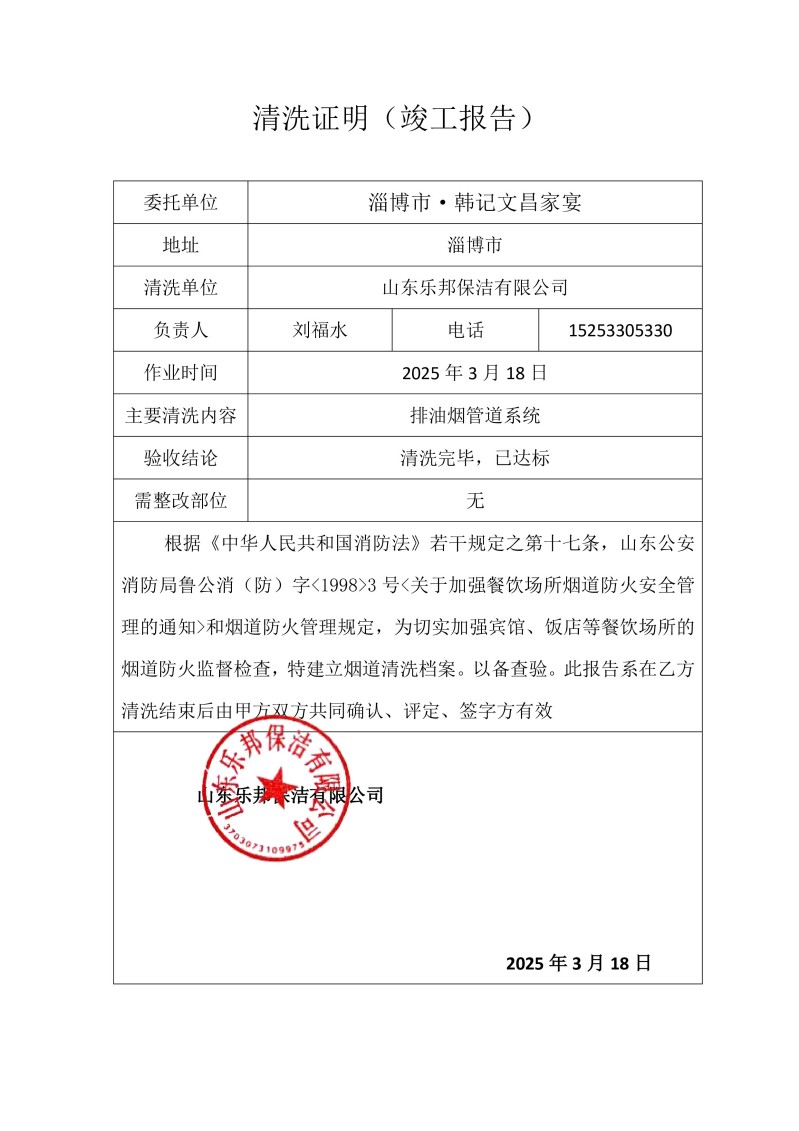 淄博市·韓記文昌家宴清洗報告25.3.18