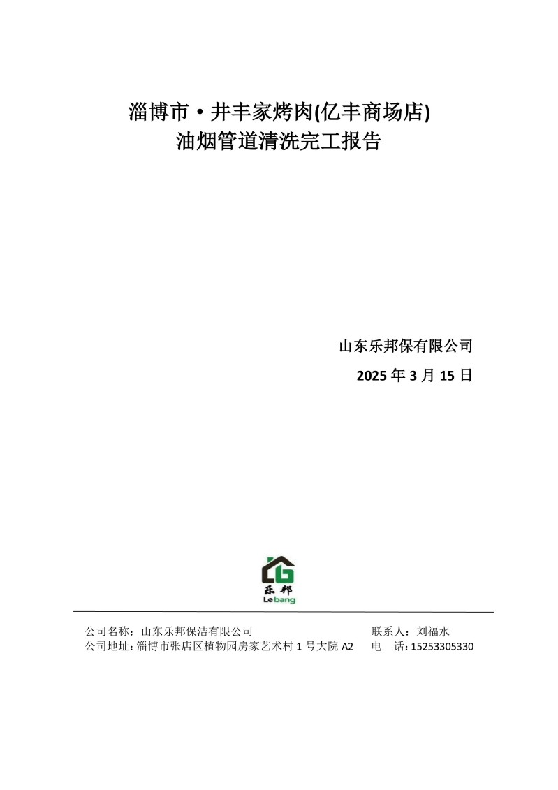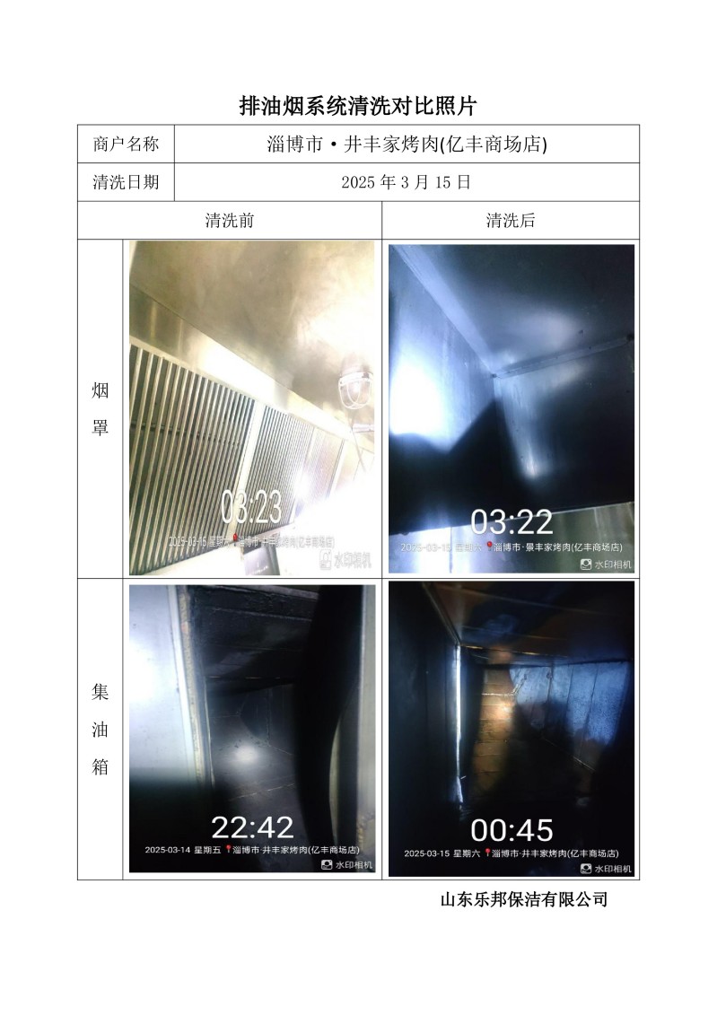 淄博市·井豐家烤肉(億豐商場店)清洗報告25.3.15