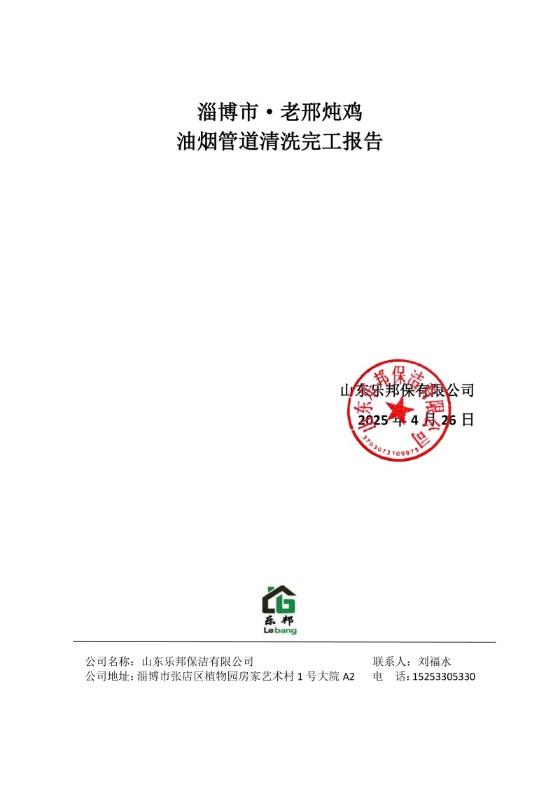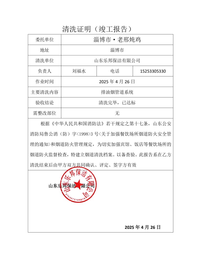淄博市·老邢燉雞清洗報(bào)告25.4.26