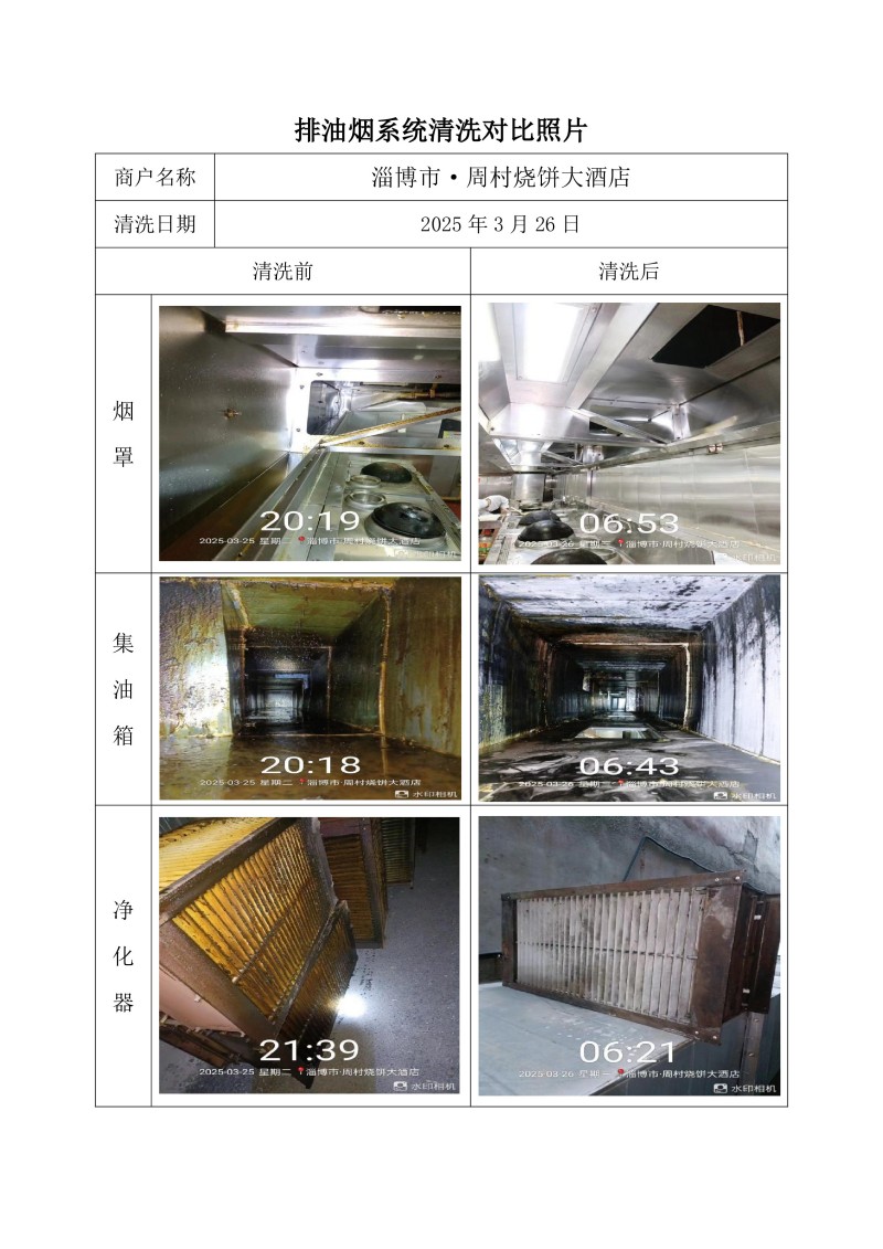 淄博市·周村燒餅大酒店清洗報告25.3.26