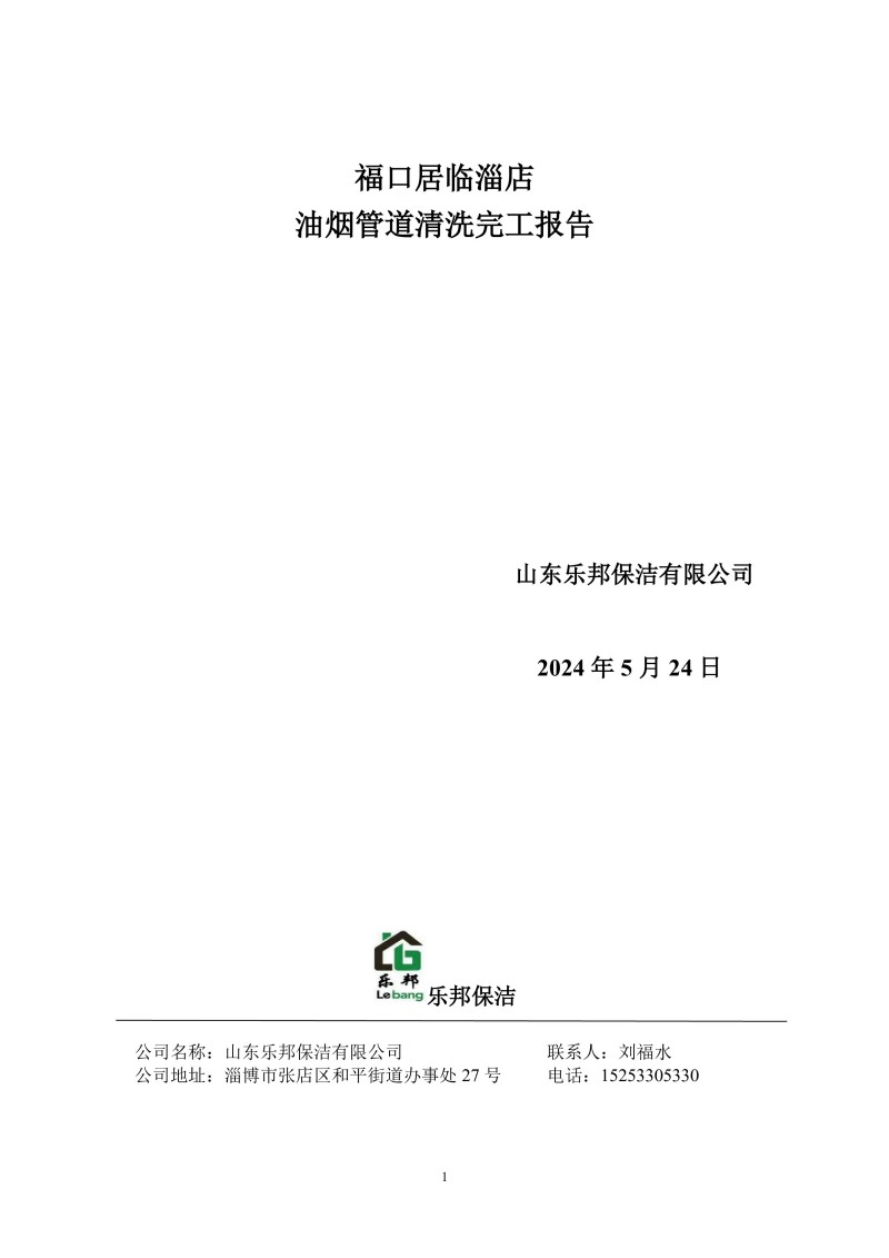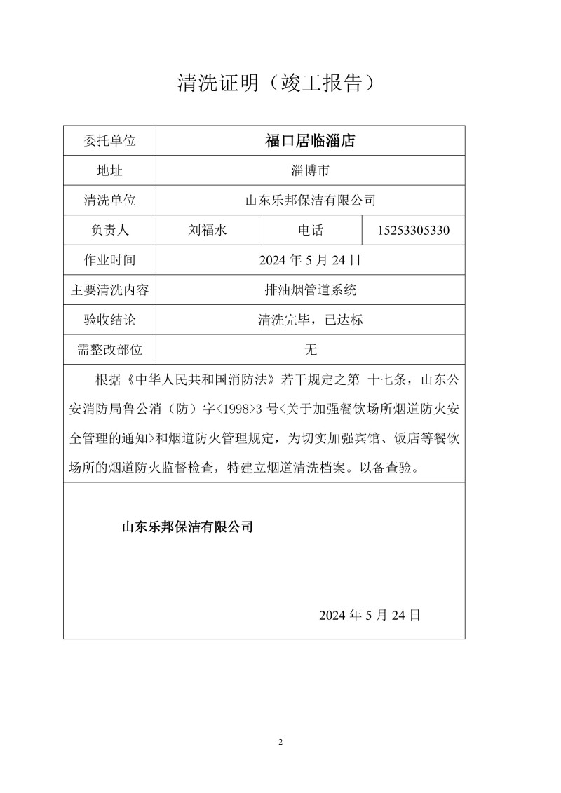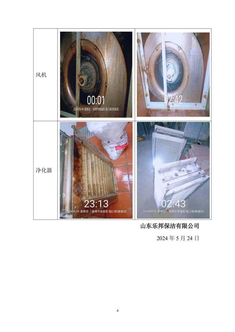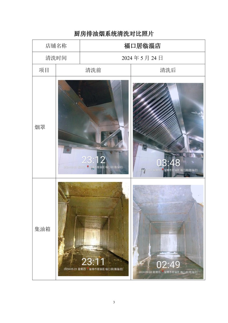 福口居臨淄店清洗報告24.5.22