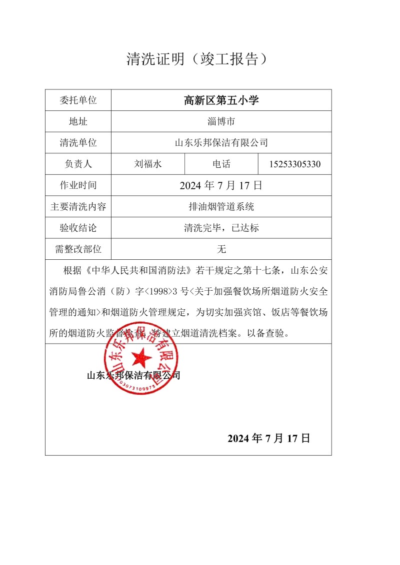 高新區第五小學清洗報告24.7.17