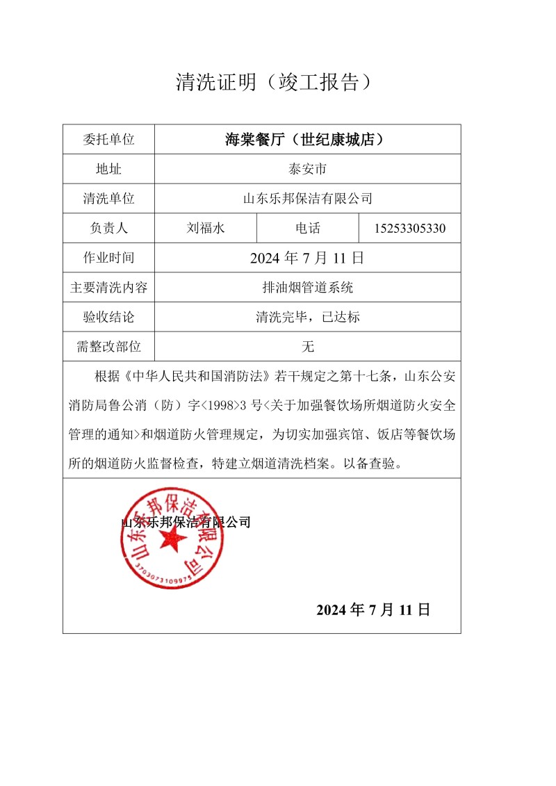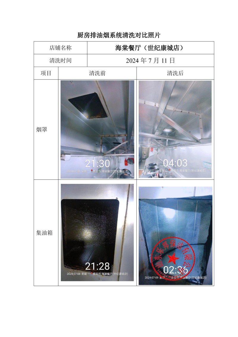 海棠餐廳(世紀康城店)清洗報告24.7.9