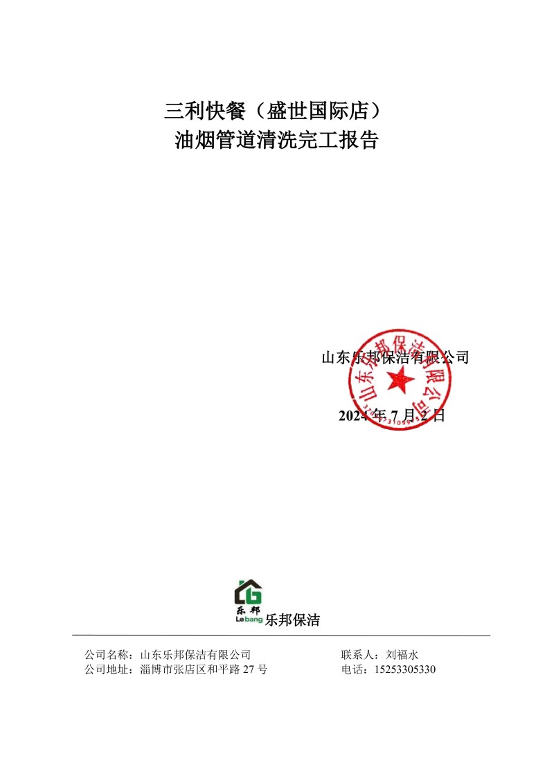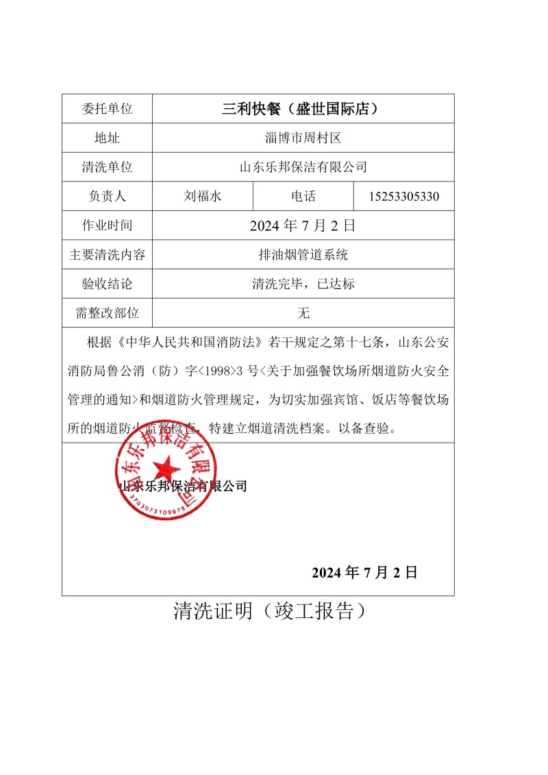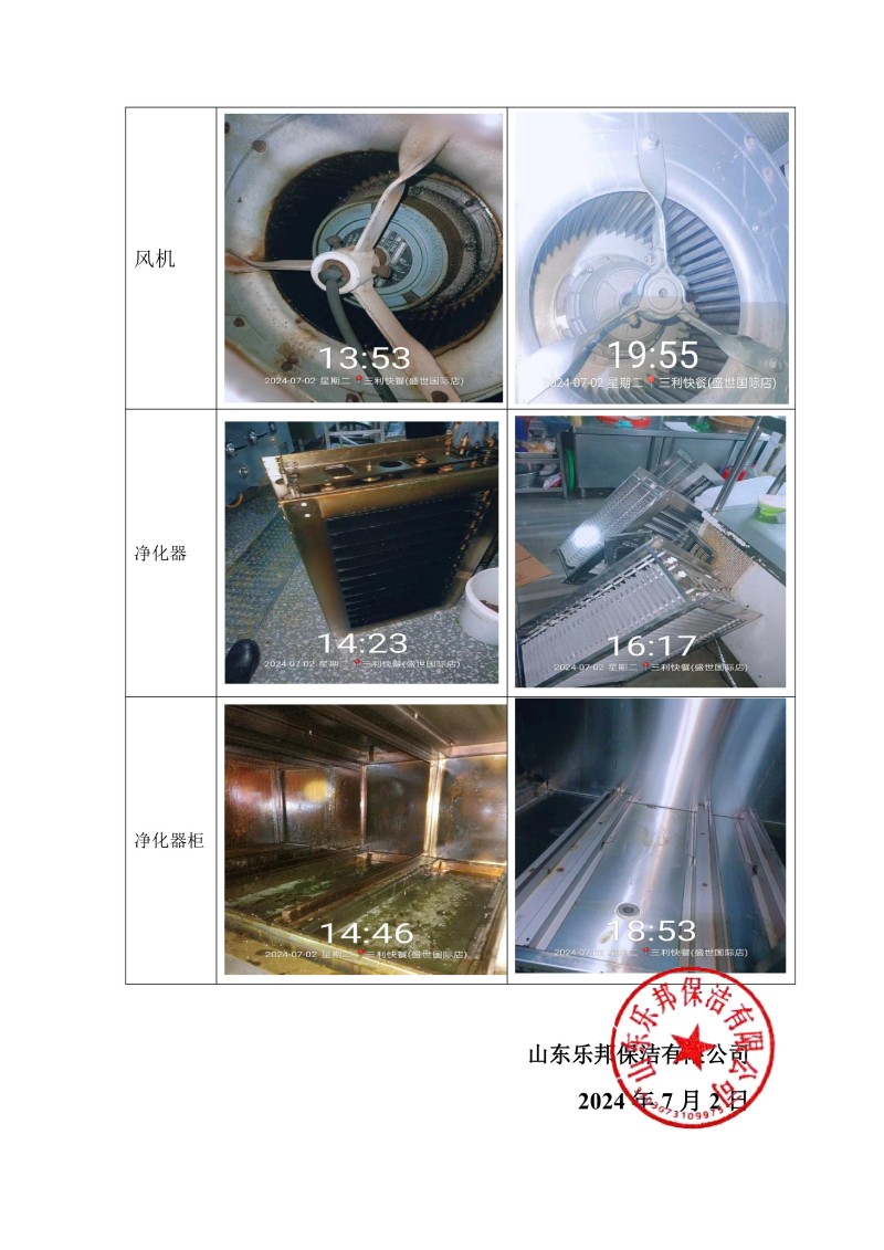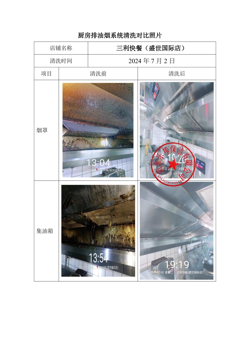 三利快餐(盛世國際店)清洗報告24.7.3