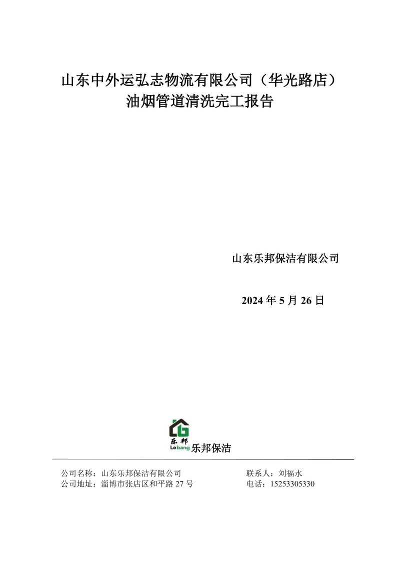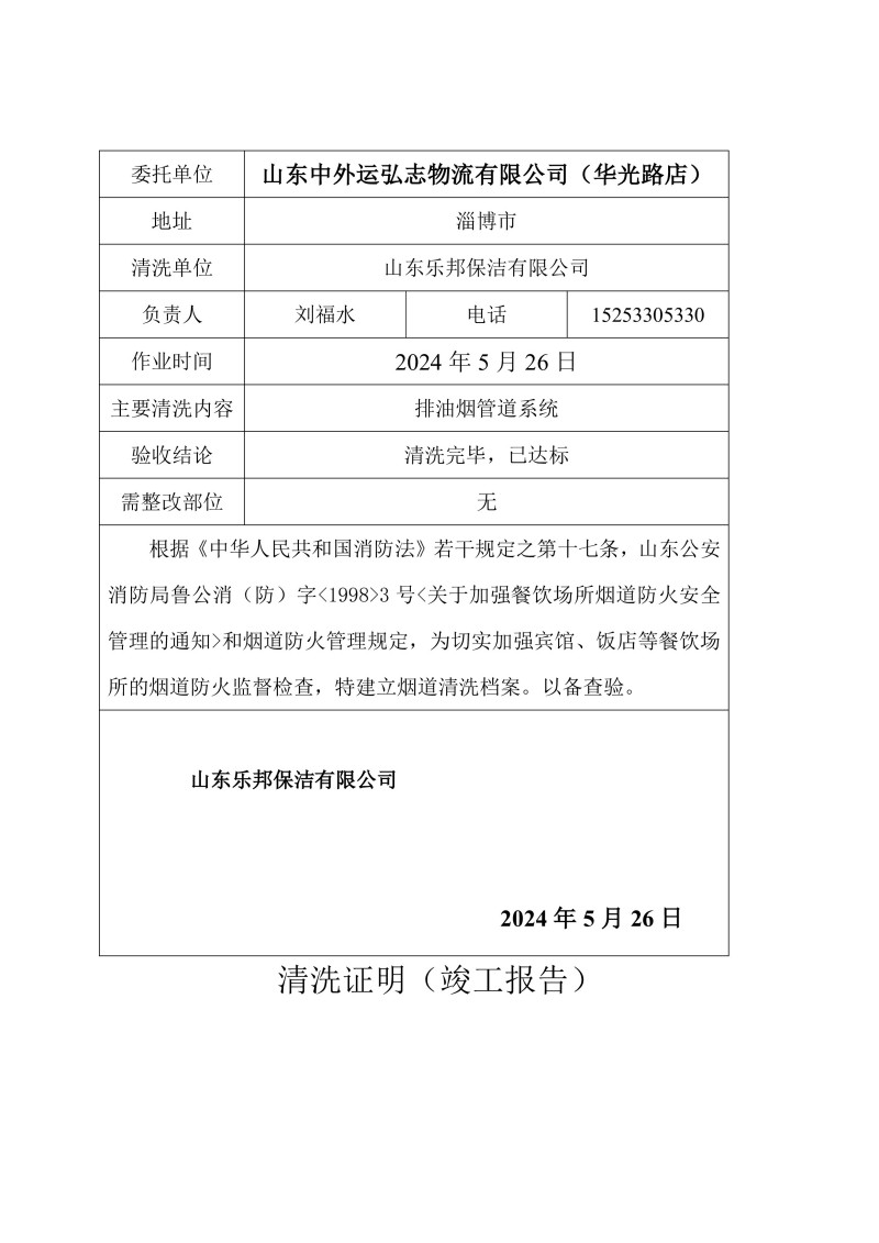 山東中外運弘志物流有限公司(華光路店)清洗報告24.5.26