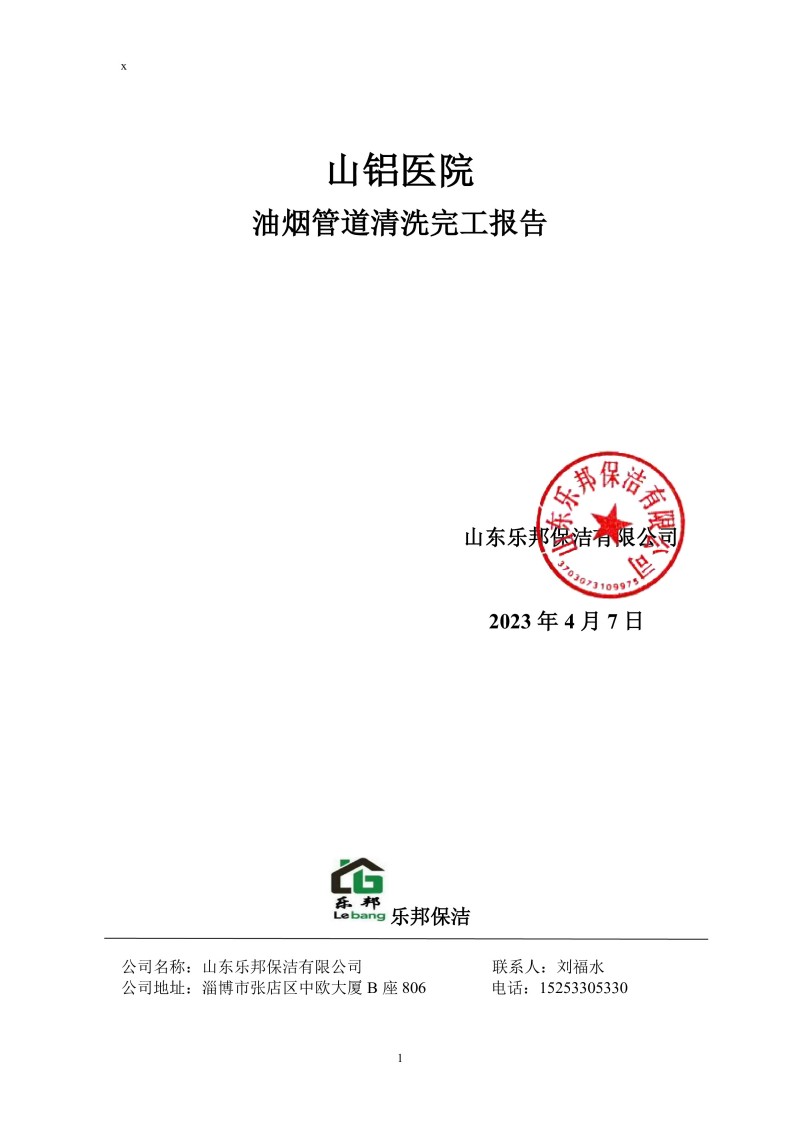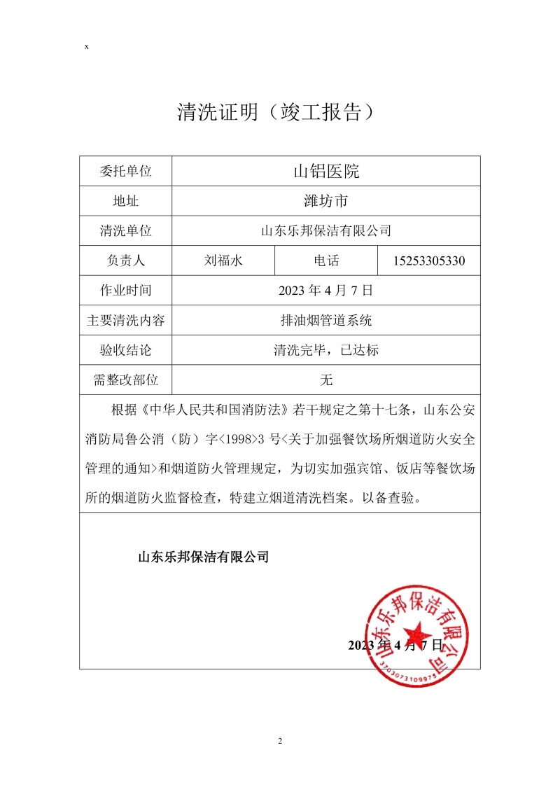 山鋁醫院清洗報告23.4.7