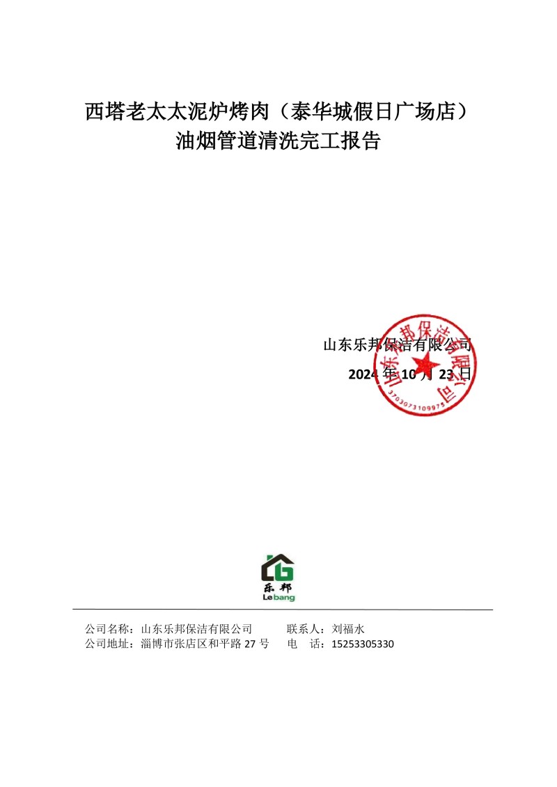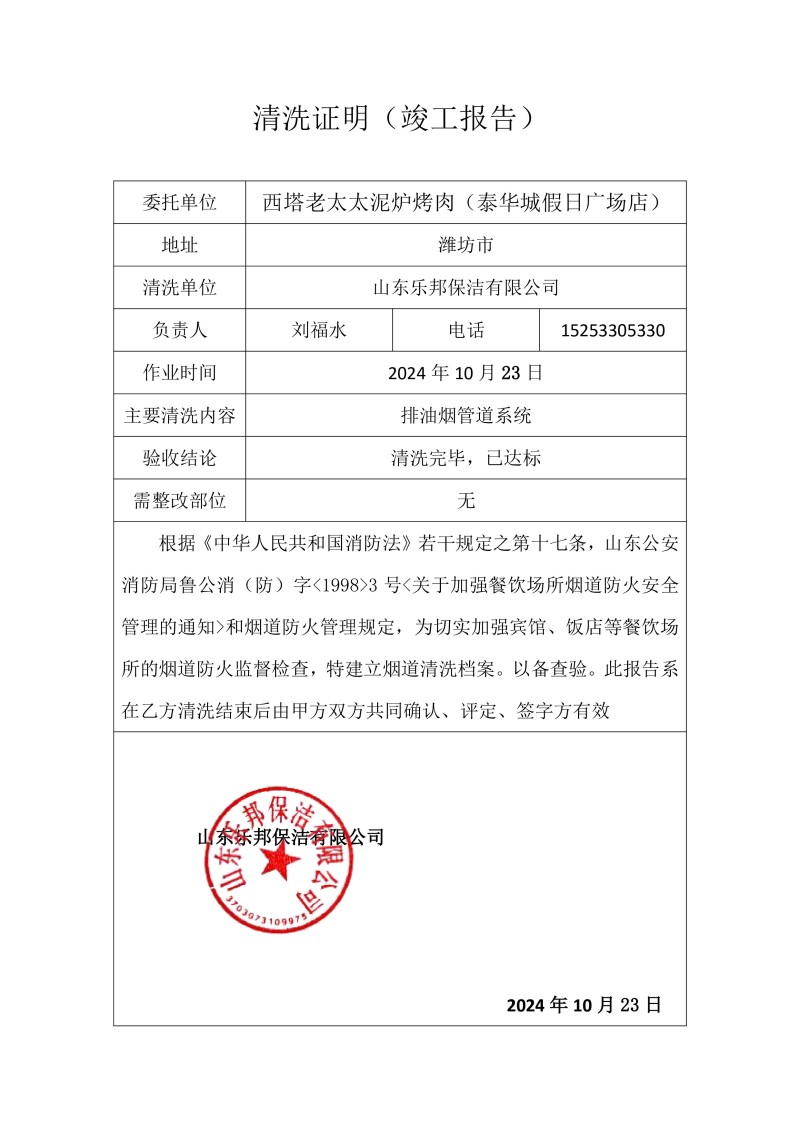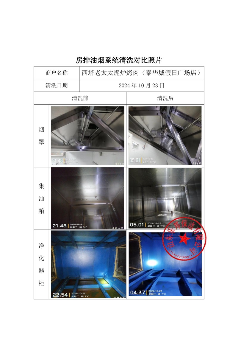 西塔老太太泥爐烤肉(泰華城假日廣場店)清洗報(bào)告24.10.23